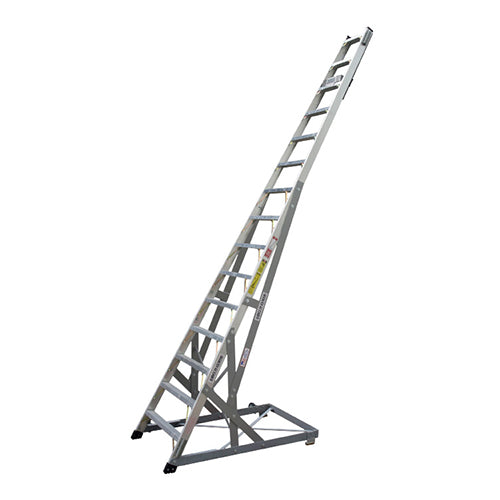 The LockNClimb Ladder Safety System offers aircraft maintenance technicians a safe and secure platform for reaching the service points around corporate and commercial aircraft and helicopters. This safety ladder system is ideal for maintenance tasks such as inserting & removing GPU cables, serving components inside the wheel well area, checking static discharge ports and inspection panels, and in other places during routine inspections. The design of these ladders have been optimized to place a technician in the optimum location of the aircraft, specific to the task at hand, to provide a safe and secure work environment for preventing accidents and injuries. LockNClimb ladders meet OSHA and ANSI standards and are equipped with extra wide comfort treads and feature a patented 6061-grade aluminum base.LockNClimb ergonomic safety ladders for corporate jets provide maintenance technicians working in line operations, MRO facilities, and engine shops a safe and secure work platform and easy access to service locations around the aircraft. Free standing wheel well cadet ladders roll easily and setup quickly saving valuable time. These ladders provide access to both sides of the wheel well and landing gear of the aircraft.This wheel well cadet ladder (EDMO# 15WWCADET) is 15 feet tall.