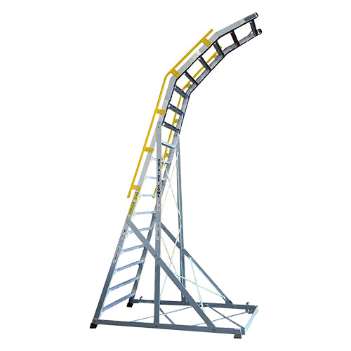 The LockNClimb Ladder Safety System offers aircraft maintenance technicians a safe and secure platform for reaching the service points around corporate and commercial aircraft and helicopters. This safety ladder system is ideal for maintenance tasks such as inserting & removing GPU cables, serving components inside the wheel well area, checking static discharge ports and inspection panels, and in other places during routine inspections. The design of these ladders have been optimized to place a technician in the optimum location of the aircraft, specific to the task at hand, to provide a safe and secure work environment for preventing accidents and injuries. LockNClimb ladders meet OSHA and ANSI standards and are equipped with extra wide comfort treads and feature a patented 6061-grade aluminum base. LockNClimb ergonomic safety ladders for corporate jets provide maintenance technicians working in line operations, MRO facilities, and engine shops a safe and secure work platform and easy access to service locations around the aircraft. Free standing pylon ladders roll easily and setup quickly saving valuable time. These ladders provide access to hard to reach areas, and the extra wide treads offer comport during extended periods of time.This Cowl Pylon ladder (EDMO# 18COWPYLO) is 18 feet tall.