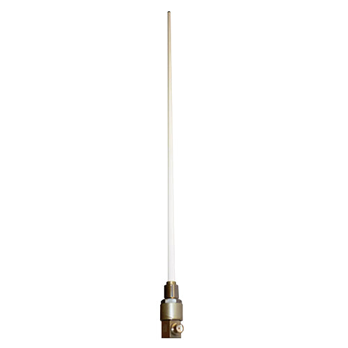 The 21-4 antenna is a linearly polarized, monopole antenna with wide band frequency characteristics intended for general communication and homing applications. Being of semi-rigid form, it is suitable for external fitting upon helicopters and fixed wing aircraft with a performance up to 350 kts EAS, and other similar applications. Electrical design consists of a single broad band radiating element coupled via matching circuitry to a single coaxial connector. The 21-4 consists of a tapered glass fibre sleeve supporting a light aluminium alloy radiating element. The element assembly is fitted to a metal body carrying the coaxial connector. This arrangement allows the antenna to be installed by single hole fixing and allows orientation of the coaxial connector through 360°. The antenna can be mounted true or raked using the angled spacers provided.