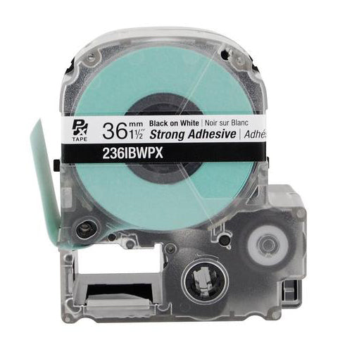 LABELWORKS PX Strong Adhesive Tape is made of a durable, all-weather polyester base with with an industrial acrylic grade adhesive that makes the flexible enough to be mounted on curved surfaces. These labeling tapes comply with ANSI/TIA/EIA-606A standards and have a 5–7 year outdoor life with the ability to withstand extreme heat and cold temperatures.This Labelworks PX Strong Adhesive tape (EDMO# 236IBWPX) is black on white with strong adhesive, 1-1/2 inch (36 mm) wide, and 30 feet long.