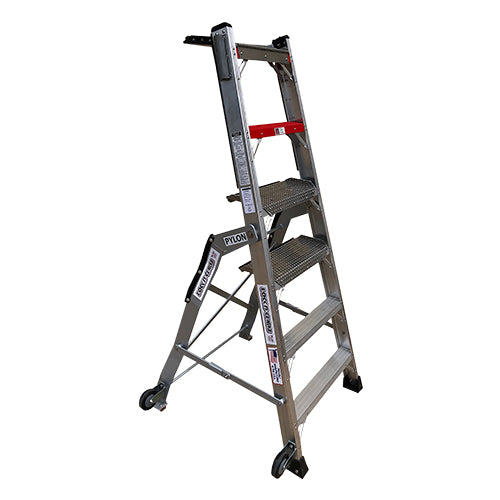The Lock-N-Climb Ladder Safety System offers aircraft maintenance technicians a safe and secure platform for reaching the service points around corporate and commercial aircraft and helicopters. This ladder system is ideal for maintenance tasks such as inserting & removing GPU cables, serving components inside the wheel well area, checking static discharge ports and inspection panels, and other places during routine inspections. The design of these ladders has been optimized to place a technician in the optimum location of the aircraft, specific to the task at hand, to provide a safe and secure work environment for preventing accidents and injuries. Lock-N-Climb ladders meet OSHA and ANSI standards and are equipped with extra wide comfort treads and feature a patented 6061-grade aluminum base. Lock-N-Climb ergonomic safety ladders for helicopters are designed to provide maintenance technicians easy access the service points around helicopters. Pylon style ladders can be easily moved around the helicopter to perform various maintenance tasks while the Helicadet style ladder can be positioned over the skids of helicopters such as the Bell 429 or MD 530A.This Lock-N-climb Helipylon ladder (EDMO# 6HELIPYLON) has a six-foot height for helicopters.