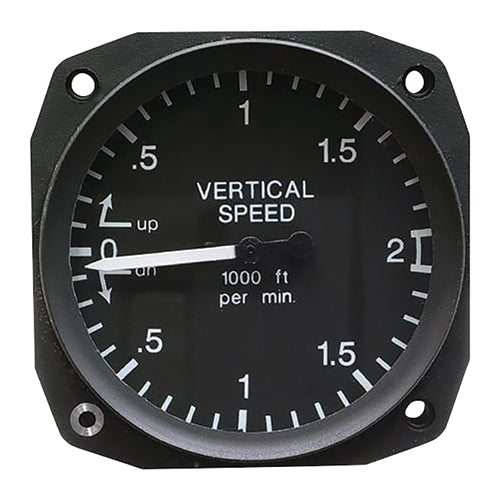 UMA vertical airspeed indicators make an excellent choice for installations in fixed wing aircraft with reciprocating or turbo prop engines.This non-TSO vertical airspeed indicator (EDMO# 8-310-20) uses a 3-1/8 inch mounting hole, has a 0–2,000 foot range, and black & white dial markings.