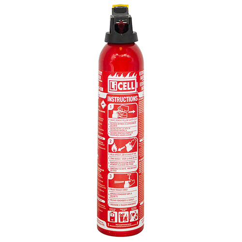 The AA series fire extinguishers are designed for portable lithium battery fire protection by using an aqueous vermiculite dispersion (AVD) for highly effective fire suppression in extreme temperatures and thermal runaway challenges associated with lithium battery and metal fires. AVD is a natural, mineral-based and environmentally safe extinguishing agent formulated from an advanced chemically and physically inert vermiculite platelets and water. This LiCELL handheld AVD fire extinguisher (EDMO# AA500) has an agent volume of 500 ml.