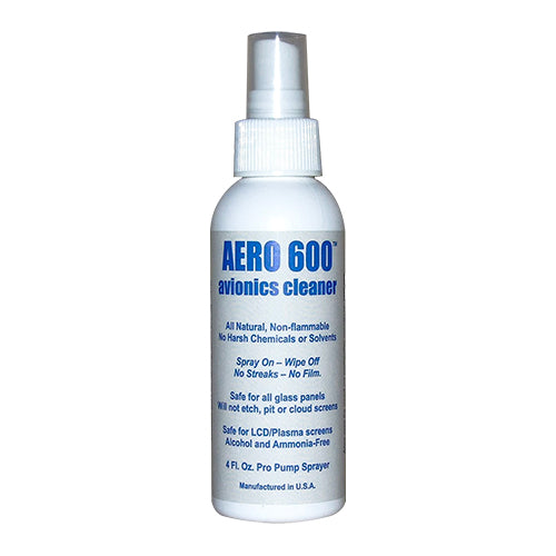 The Aero 600 avionics cleaner eliminates fingerprints, streaks, dust, dirt, oils, from avionics, glass cockpit screens, electronic flight bags, GPS/PDA screens, Laptop, LCD & iPhone screens. It is non-toxic and completely bio-degradable, manufactured to exacting standards from the highest quality all natural plant-derived materials. AERO-600 is water based, nonflammable, & contains no alcohol, solvents, phosphates, petroleum based, or harsh ingredients & gives off no VOCs.