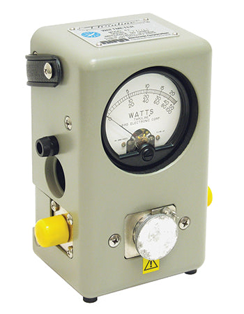 The Bird Model 43 is a thoroughly engineered, portable, insertion-type instrument designed to measure both forward and reflected CW power in coaxial transmission lines. It gives accurate RF power flow readings under any load conditions. The Model 43 THRULINE wattmeter is comprised of a line section and direct-reading 3 scale meter housed in a rugged, corrosion-resistant aluminum case. QC (quick change) type connectors and a full range of plug-in measuring elements (ordered separately now or later to meet your existing needs) give the Model 43 amazing flexibility. Two extra elements can be stored in the housing, one on each side. The Model 43 is easy to use and simple to service in the field.