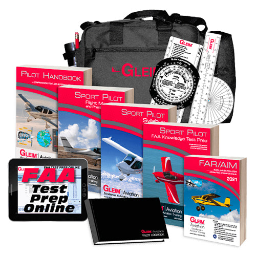 The Gleim Sport Pilot Kit is an all-in-one program designed to expedite training for the Sport Pilot certificate. This kit contains everything you need to become a Sport Pilot.Set includes:Flight BagFlight ComputerFAR/AIMFAA Test Prep Online-Sport PilotLogbookPilot HandbookPlotterSport Pilot Flight Maneuvers and Practical Test Prep bookSport Pilot FAA Knowledge Test bookSport Pilot Syllabus bookSport Pilot Training Record