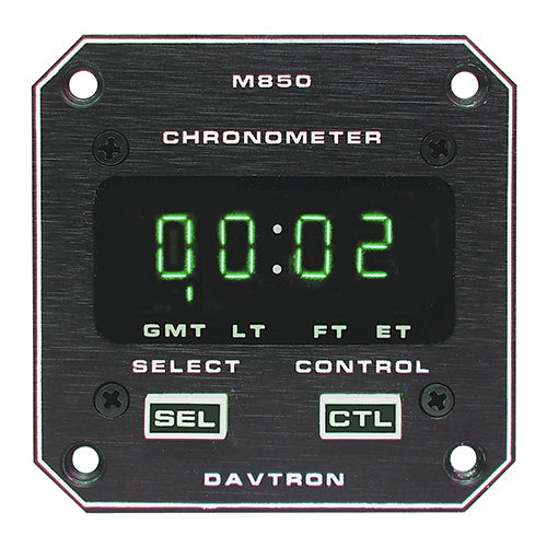 The M850 digital clock chronometer has a two-button control system, setting operations are identical for both alarm and time setting. The universal time is in a 24 hour format, while local time can be set to 12 or 24 hour format. The incandescent high-contrast display is readable in bright sunlight.Version (EDMO# 85028VNVGS) has green A night vision compatible incandescent 28V lighting, screw locks, and N size alkaline battery memory. This is a 2-1/4 inch front panel mount instrument.