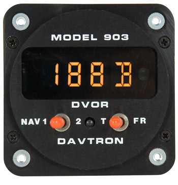 The M903 digital VOR gauge is a computer based product that brings digital VOR information to the pilot at the push of a button. The unit displays the radial position of the aircraft, both to or from the VOR station. The radial readout is the actual one the aircraft is on and is updated every 0.8 seconds. The display makes the VOR step down fixes and intersections easily read with a quick glance by the pilot. The pilot can see how fast they are approaching the fixes rather than having the needle on the OBI hard over to one side. This model is rear mounted and clock mounted, and also includes an alphanumeric station identifier.