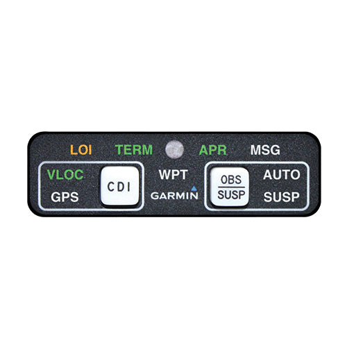The MD41is a compact, self-contained Annunciation and Control Unit (ACU). The fully integrated control unit provides annunciation and mode selection for Global Positioning System (GPS) / Satellite-Based Augmentation System (SBAS) navigators. This series of the MD41 product family is specifically designed to work with the Garmin GTN 6XX/7XX series WAAS navigator systems and derivatives with equivalent functionality. It combines the necessary functions and annunciations required to interface with an approved system and provide regulatory compliance with GPS/SBAS minimum performance specifications.Version (EDMO# MD41-1510) is a 28V unit with horizontal orientation compatible with the Garmin GTN 650/750 GPS system.