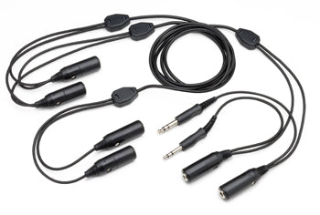 Triple Headset Adapter: Converts one set of radio or intercom mic and phone jacks into three sets.