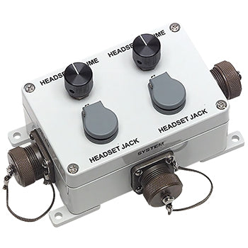 Expands the system beyond the master station. Contains two headset jacks, each with listen level control, system input connector and two system output connectors.