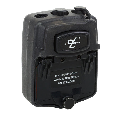 The Series 9900 wireless intercom system is the perfect solution for wireless communications in demanding, high-noise environments such as airline and airport operations, fire and rescue applications, marine intercom, or any applications requiring robust, reliable and secure communications. The 9900 system is ideal for push-back operations, wing-walkers, marshaling agents, maintenance mechanics and de-icing operations. The 9900 wireless system consists of the push-back gateway, wireless belt stations, and any Series 9900 wireless headsets.The U9910-BSW is a voice-active, belt station that provides the wireless interface between the headset and a wireless gateway. Up to four belt stations can be linked to the a gateway via close-proximity linking. The status of the wireless link, radio/intercom PTT transmit, and battery charge is indicted by the bi-color LED which is located on the on/off/link button. A user replaceable, rechargeable Li-Polymer battery provides 24 hours of continual use.