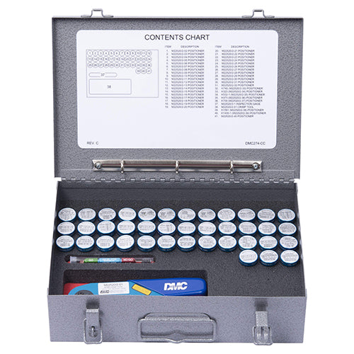 The DMC274 supplies your staff with the AFM8 (M22520/2-01) indent crimp tool and associated Mil Spec K positioners. The tool features a cycle controlled precision ratchet that assures accurate crimps every time. The tool frame has a built-in 8 step selector knob for ease in dialing the correct crimp depth setting for the wire being used.