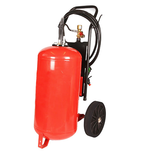 The AW series wheeled fire extinguishers are designed for portable lithium battery fire protection by using an aqueous vermiculite dispersion (AVD) for highly effective fire suppression in extreme temperatures and thermal runaway challenges associated with lithium battery and metal fires. AVD is a natural, mineral-based and environmentally safe extinguishing agent formulated from an advanced chemically and physically inert vermiculite platelets and water. This wheeled AVD fire extinguisher (EDMO# AW050NC) has an agent volume of 50 liters.