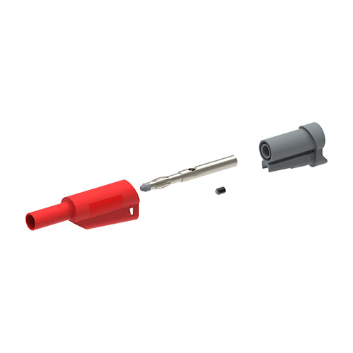 4 mm fully insulated Do-it-Yourself (DIY) fixed sheathed stacking banana plug allow you to build your own test leads and meet the latest safety standards. Both solder and solderless versions with easy snap together assembly.This 4 mm banana jack (EDMO# CT2631-2) has a solderless construction and red housing.