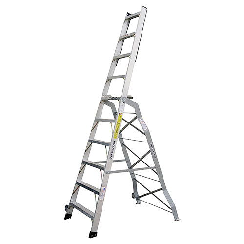 The Lock-N-Climb Ladder Safety System offers aircraft maintenance technicians a safe and secure platform for reaching the service points around corporate and commercial aircraft and helicopters. This ladder system is ideal for maintenance tasks such as inserting & removing GPU cables, serving components inside the wheel well area, checking static discharge ports and inspection panels, and other places during routine inspections. The design of these ladders has been optimized to place a technician in the optimum location of the aircraft, specific to the task at hand, to provide a safe and secure work environment for preventing accidents and injuries. Lock-N-Climb ladders meet OSHA and ANSI standards and are equipped with extra wide comfort treads and feature a patented 6061-grade aluminum base. Lock-N-Climb ergonomic safety ladders for corporate jets provide maintenance technicians working in line operations, MRO facilities, and engine shops a safe and secure work platform and easy access to service locations around the aircraft. Free standing pylon ladders roll easily and setup quickly saving valuable time. These ladders provide access to hard to reach areas, and the extra wide treads offer comport during extended periods of time.This Lock-N-climb Pylon ladder (EDMO# 10LNCPYLON) has a 10-foot height.
