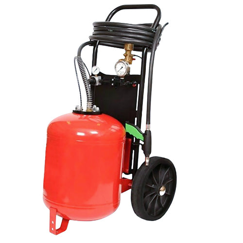 The AW series wheeled fire extinguishers are designed for portable lithium battery fire protection by using an aqueous vermiculite dispersion (AVD) for highly effective fire suppression in extreme temperatures and thermal runaway challenges associated with lithium battery and metal fires. AVD is a natural, mineral-based and environmentally safe extinguishing agent formulated from an advanced chemically and physically inert vermiculite platelets and water. This wheeled AVD fire extinguisher (EDMO# AW025NC) has an agent volume of 25 liters.