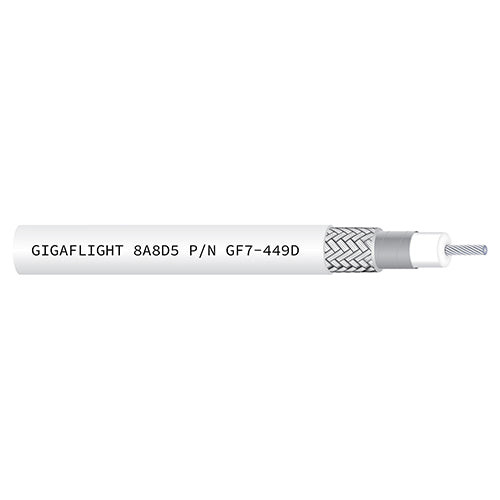 This 75-ohm coaxial cable (EDMO# GF7-449D) is an identical alternative to the commonly used V73263 cable, offering equivalent electrical performance, size, weight, connector compatibility, and application versatility. It features a double-shielded cable with a helically-wrapped silver-plated copper strip and tin-plated copper braid, providing over 100% shielding coverage. The GF7-449D is recommended for SMPTE 259M and is also suitable for SMPTE 292, SMPTE 424, and 12G-SDI video applications.