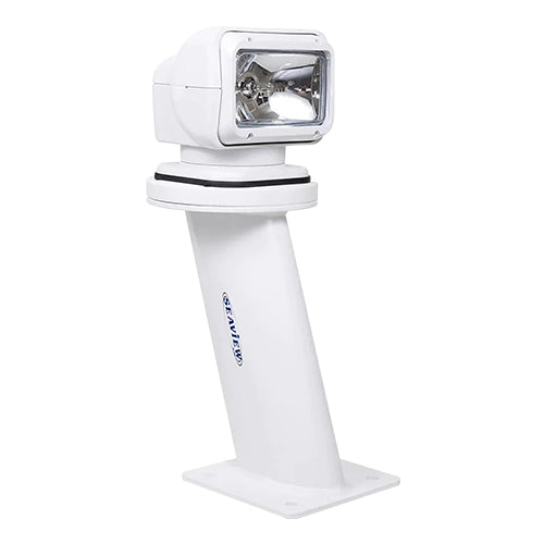 Seaview 5-inch and 12-inch tall aft leaning mounts for thermal cameras and searchlights. Powder coated brilliant white gives it a nice clean look and yet is very durable. Specifically designed for installations where space is very limited. The base for this mount is 7-inches by 7-inches.This aft-leaning thermal camera and searchlight mount (EDMO# PMA12FSL7) is 12-inches tall and is compatible with most thermal cameras and searchlights.
