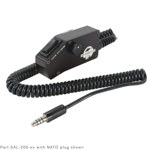 Skye Avionics drop cords are designed to withstand rough use and keep on working. These drop cords are ergonomically designed and can be operated by either hand with strategically placed volume control and switches. The switches are long-life switches that are rated for 1,000,000 mechanical and electrical cycles. The volume control is a sealed container and panel sealed to IP67 specifications. It is rated for 50,000 cycles and 50 g’s in three successive shocks in three directions. These drop cords are designed for forestry, air ambulance, search and rescue, police, tactical, surveillance, ground crew, and tourism applications.This SAL-201 drop cord (EDMO# SAL-201-24) includes MS3116F10-6P connector, volume control, 24 inch coiled cord, ICS lock-mom switch